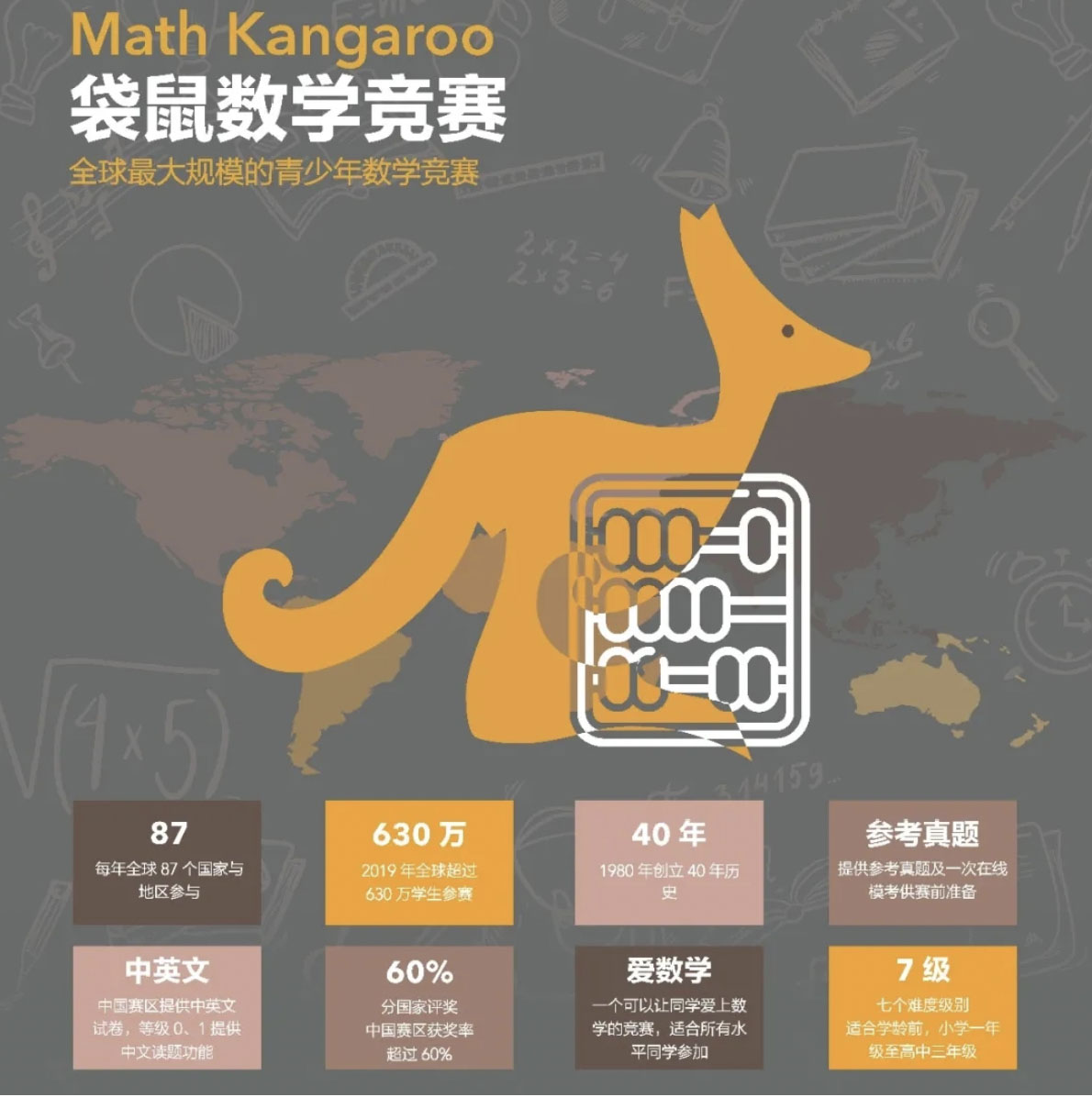 2021年4月17日,袋鼠數學思維挑戰(zhàn)(Math Kangaroo)在中國舉行,共有來自全(quán)國29個省市自治區、150餘個城市、4216所學校的59524名同學報名參(cān)加。