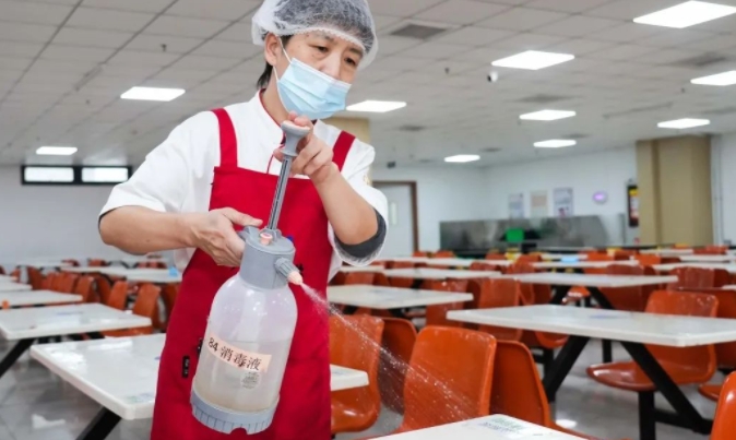 每餐過後(hòu),工作人員都會對餐廳進行全方位的消毒工作,做到無衛生死角。