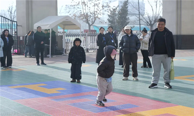 在體育教師(shī)的指導下,孩子模仿“小螃蟹”們,圍著操場或奔跑,或(huò)跳躍。有趣的課(kè)程讓操場(chǎng)上充滿了歡聲笑語。