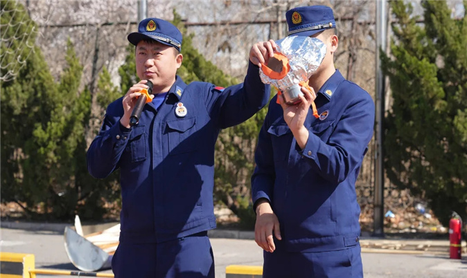 消防員們精心設置和模(mó)擬火情現場,學生們在消防員的指導(dǎo)下,迅速行動,運(yùn)用所學知識和技能(néng)進行滅火。
