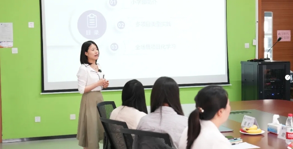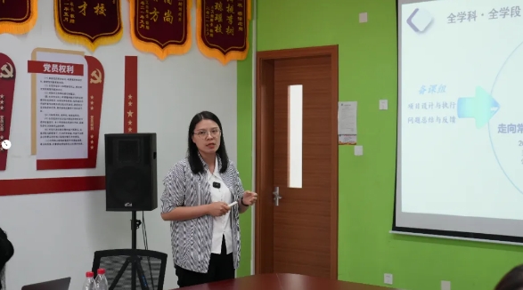六力學校(xiào)小學部教研教學副校長(zhǎng)李靜秋通過案例分析和數據展示,講解了項目化教學的實施步(bù)驟和效果評估方法;六力學校初中部教研主任胡安蘋分享了他們(men)在項目化教學中的經驗和心得,特別是(shì)如何在大(dà)單元教學中融入跨學科知識和實踐(jiàn)技能。